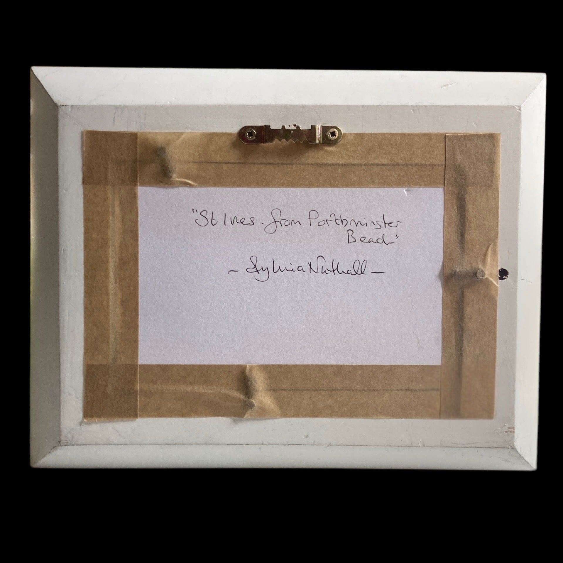 Sylvia Nuthall (British), St Ives from Porthminster Beach, oil on board, initialled and titled verso.