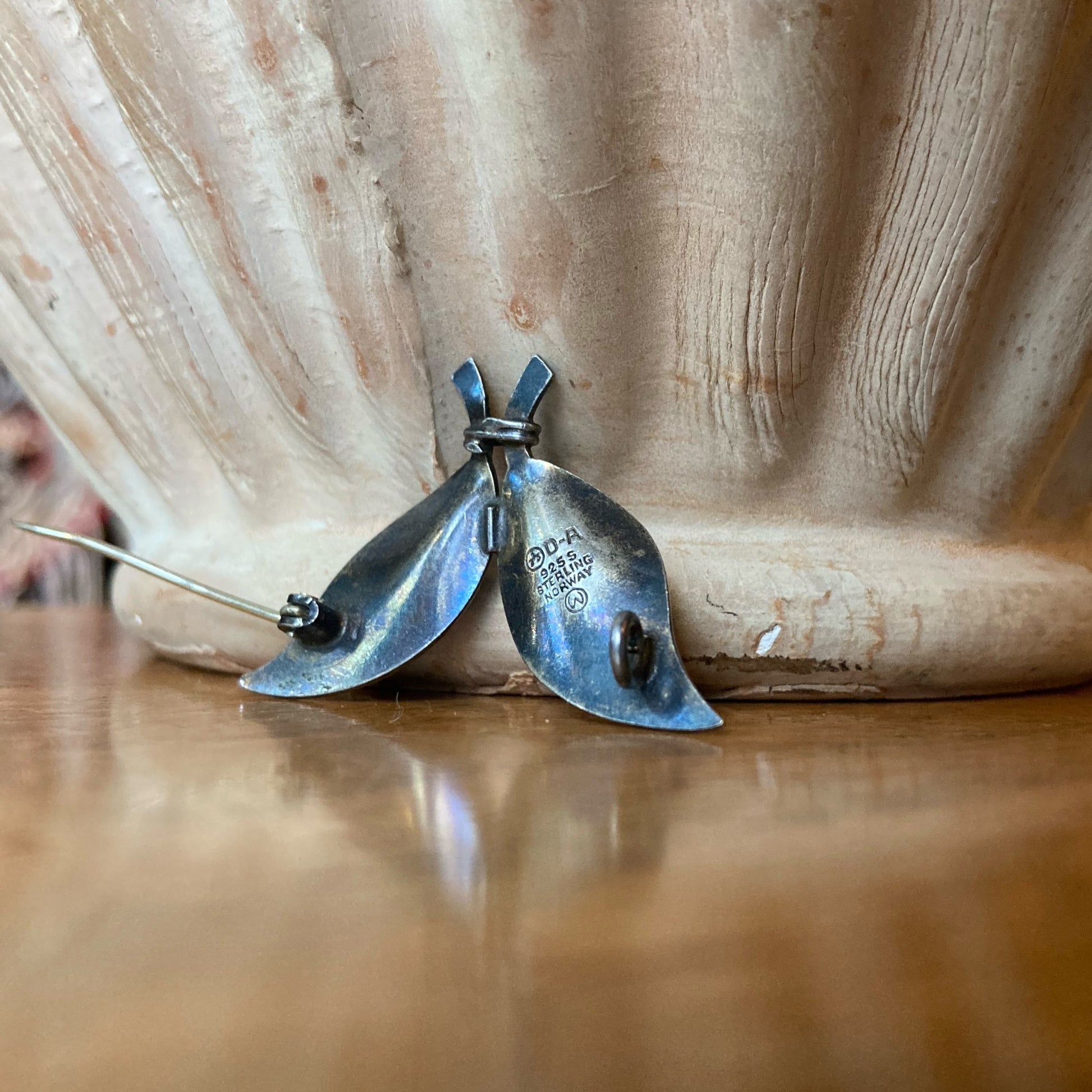 David Andersen Norway sterling silver and blue enamel leaf brooch. Also available in silver gilt with light blue enamel.