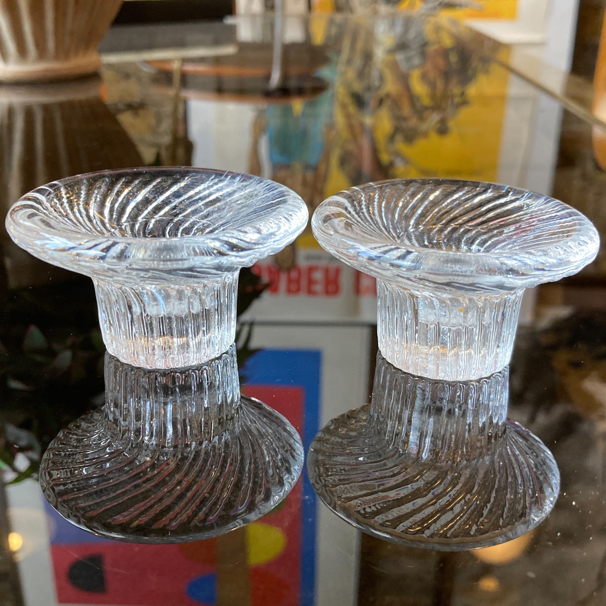 Pair of Iittala Poppa glass candle holders. Lovely vintage Finnish design. In excellent condition.