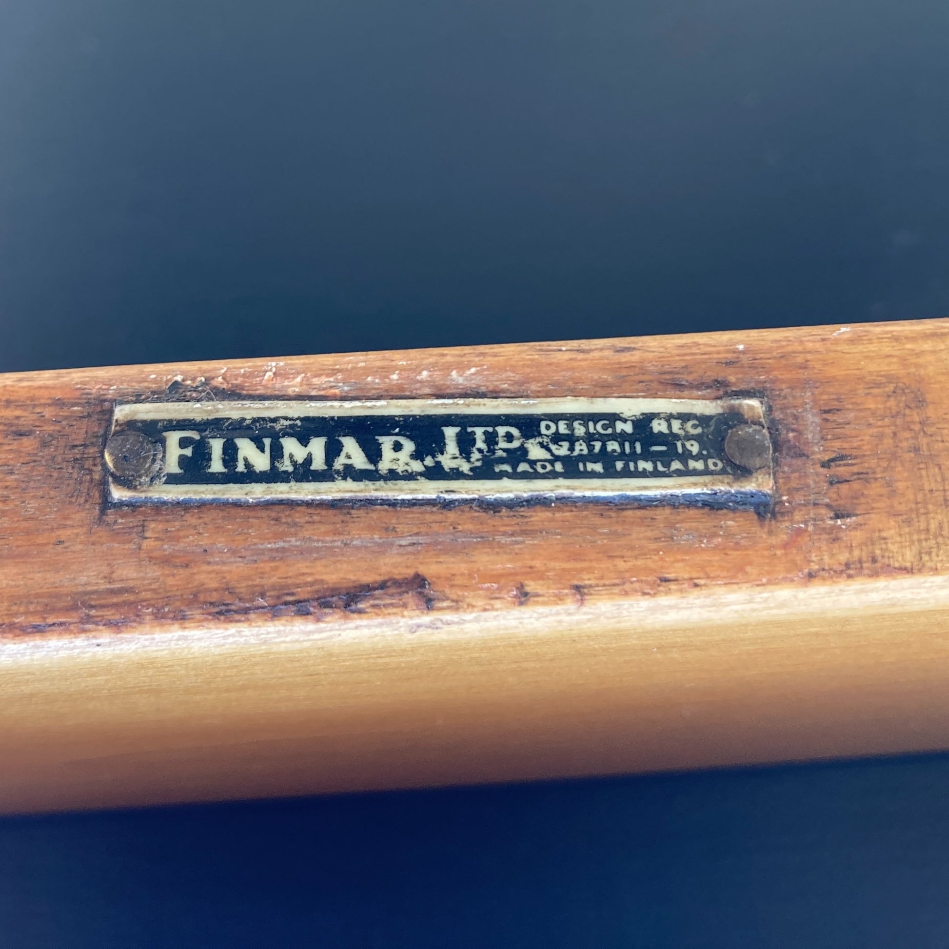 Rare early production Alvar Aalto (Finnish, 1898-1976) Model 403 hallway chair with the original Finmar label featuring Aalto's trademark bent ply wood design on a solid birch frame with inlaid arm details. Previously owned by the architect of the De La Warr pavilion in Bexhill-on-Sea, it has great provenance and is in excellent condition.