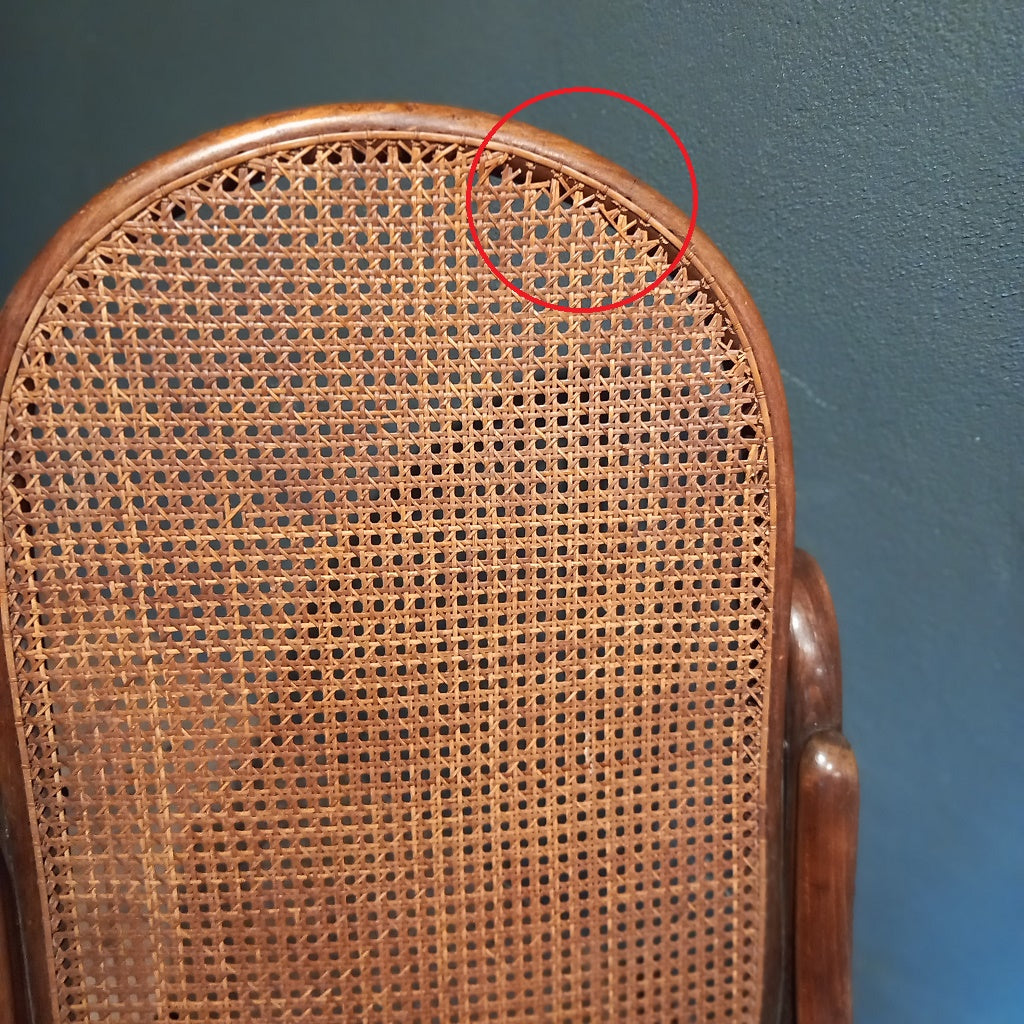 Vintage bentwood and rattan rocking chair. In good working condition with some damage to the rattan.