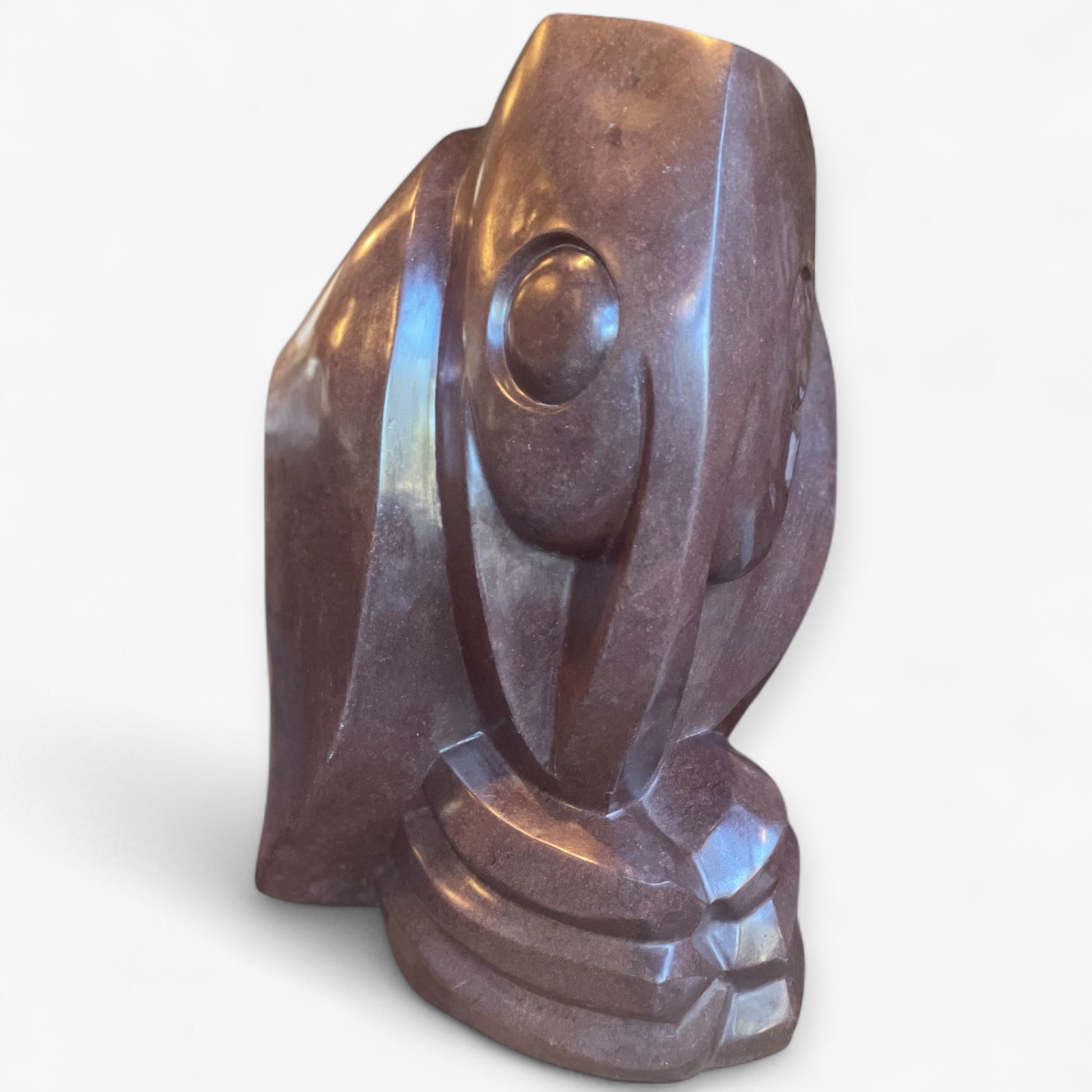 Brighton Sango (Zimbabwean, 1958-1995), Go Away Bird, stone sculpture, base engraved "Sango".