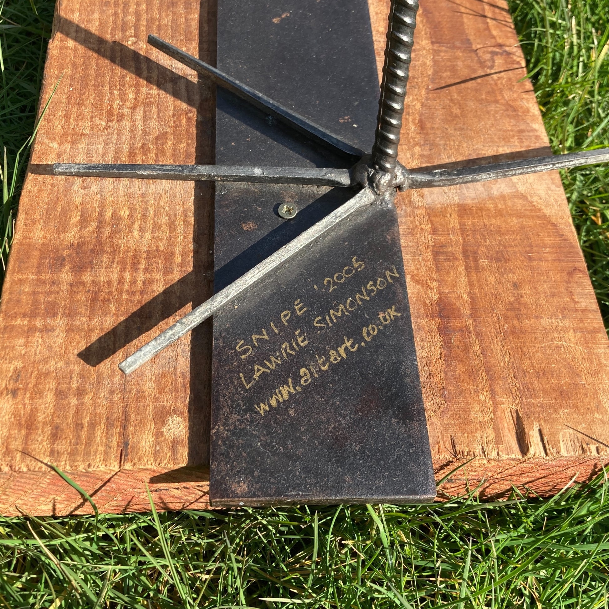 Lawrie Simonson (British), Snipe sculpture, metal on wood. Signed and dated 2005.