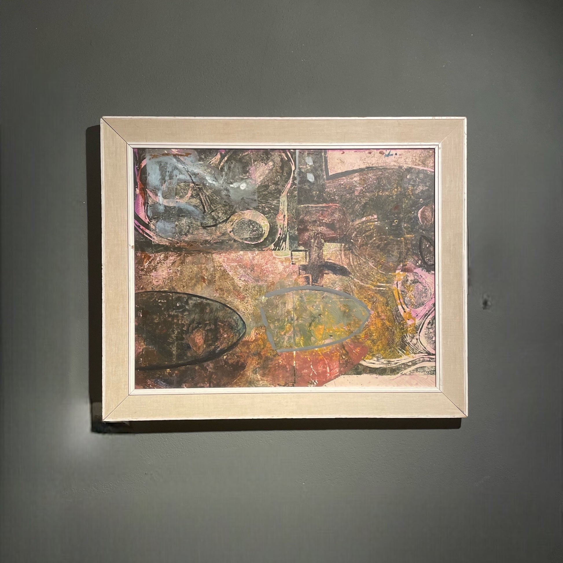 St Ives School, abstract study of boats in a harbour, mixed media on board. 39 x 49cm